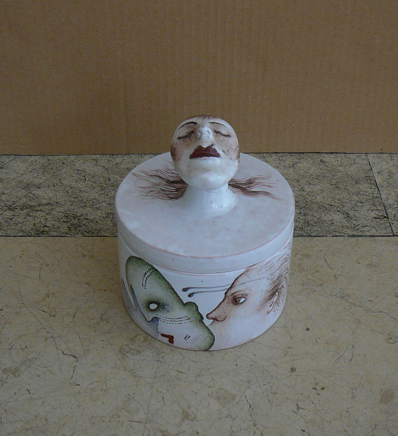 Dóza větší majolika, průměr 10,7cm, 1981 Cena: 4.000,-Kč