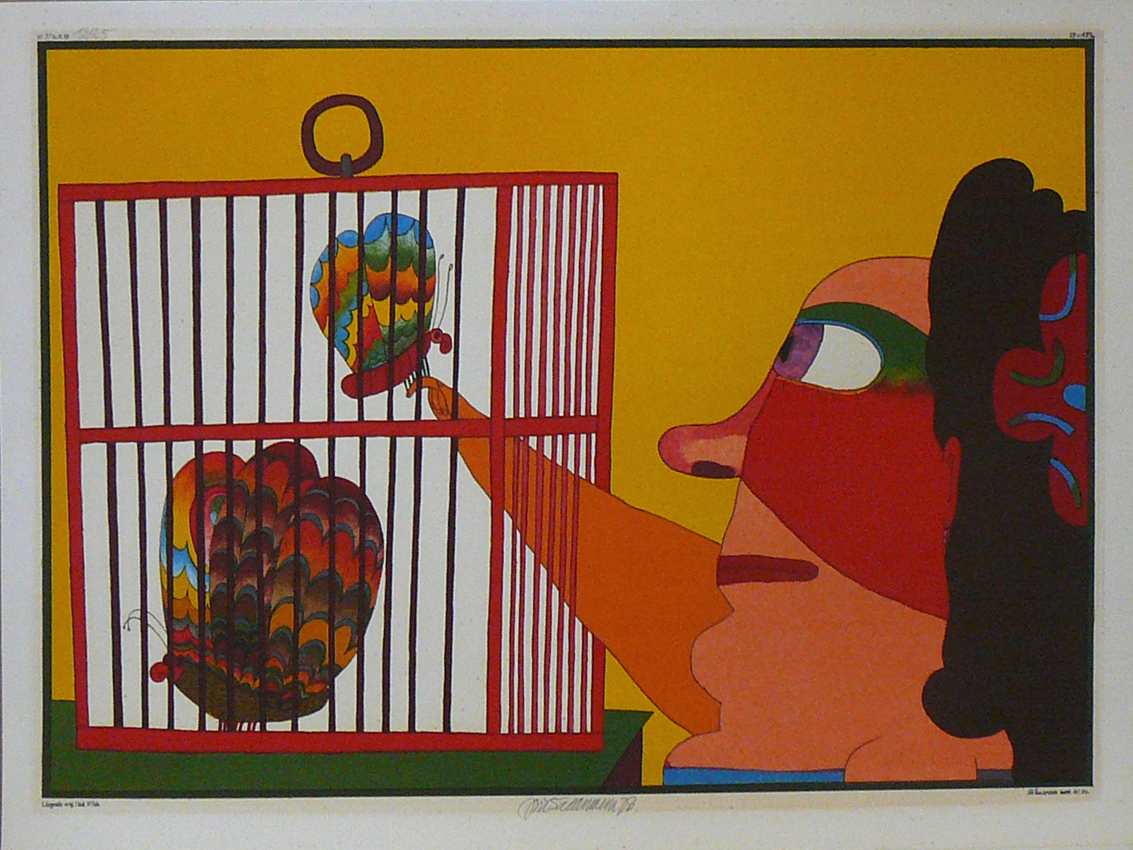 Létání a loučení barevná litografie, papír, 27 x 21,5cm, 1985 Cena: 5.600,-Kč