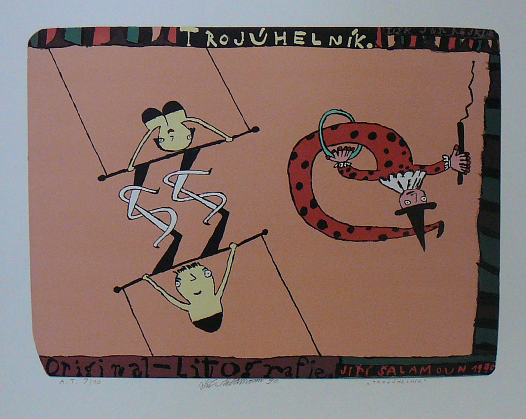 Létající cirkus barevná litografie, 28 x 40cm, 2005 Prodáno