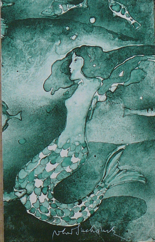 Mořská panna barevná litografie, papír 18,2 x 11,3cm Cena: 1.400,-Kč
