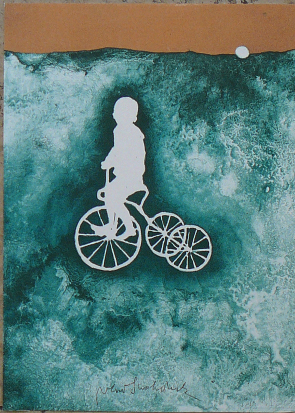 Tříkolka barevná litografie, papír, 20,8 x 15cm Cena: 1.200,-Kč