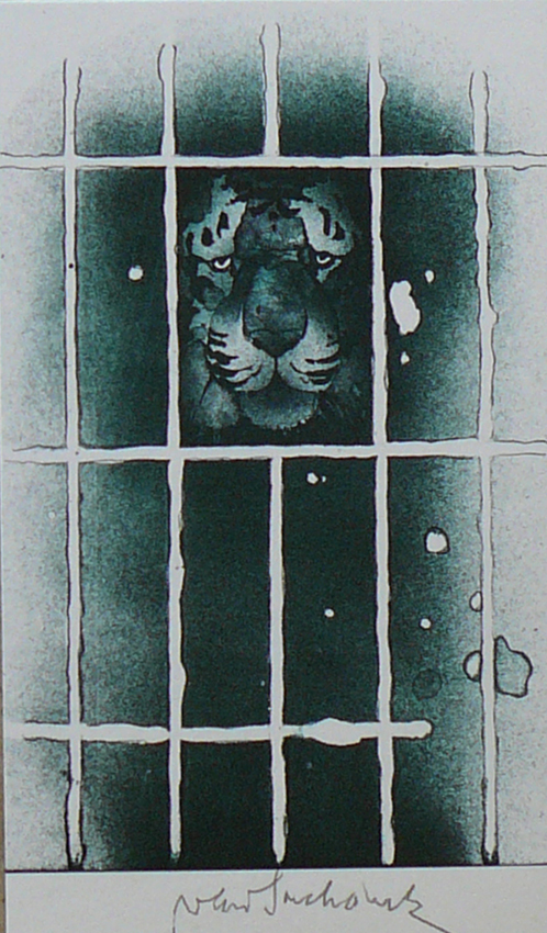 Tygr barevná litografie, papír, 18 x 10,5cm Cena: 1.000,-Kč